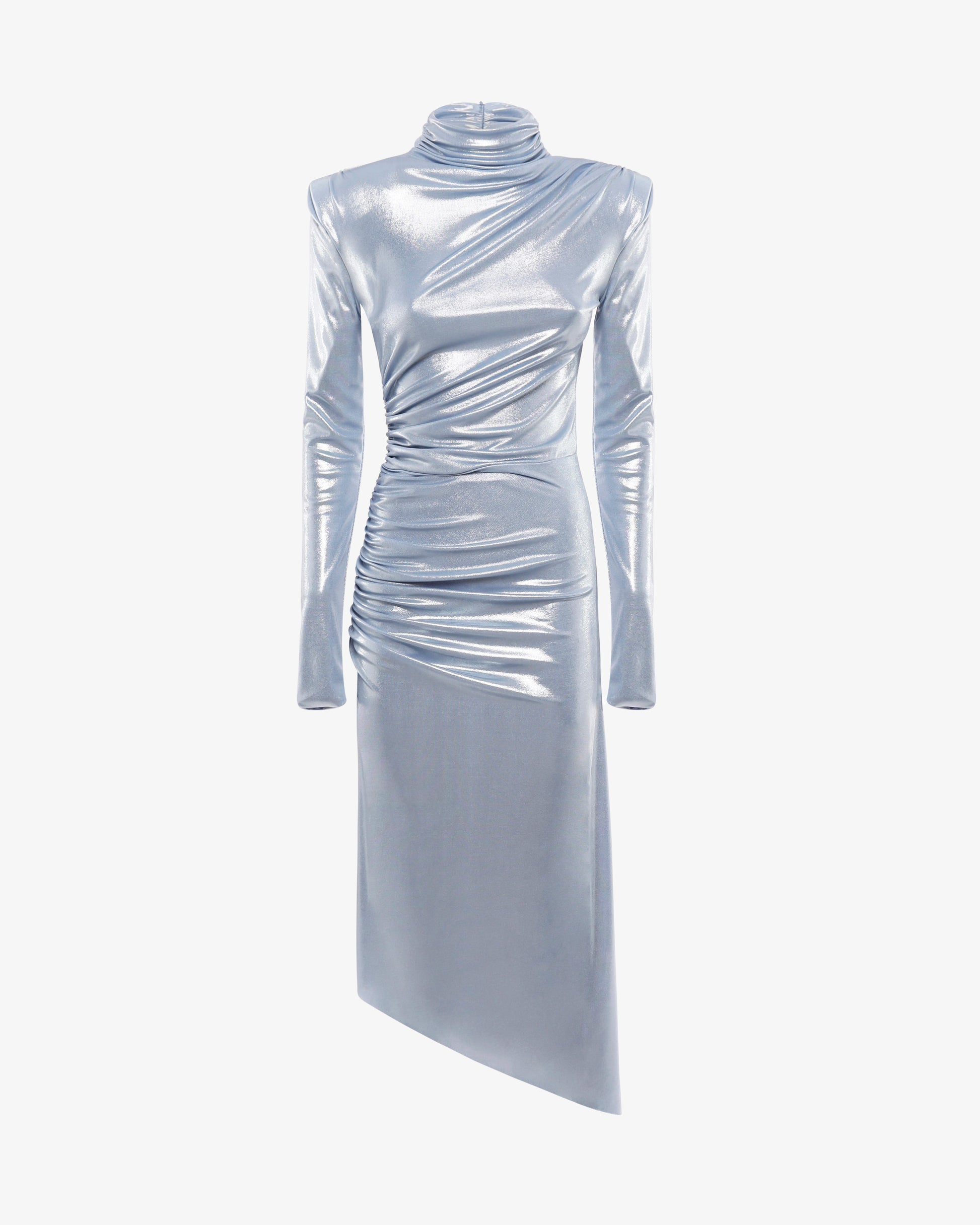 Abito midi mezzo collo in jersey metallizzato