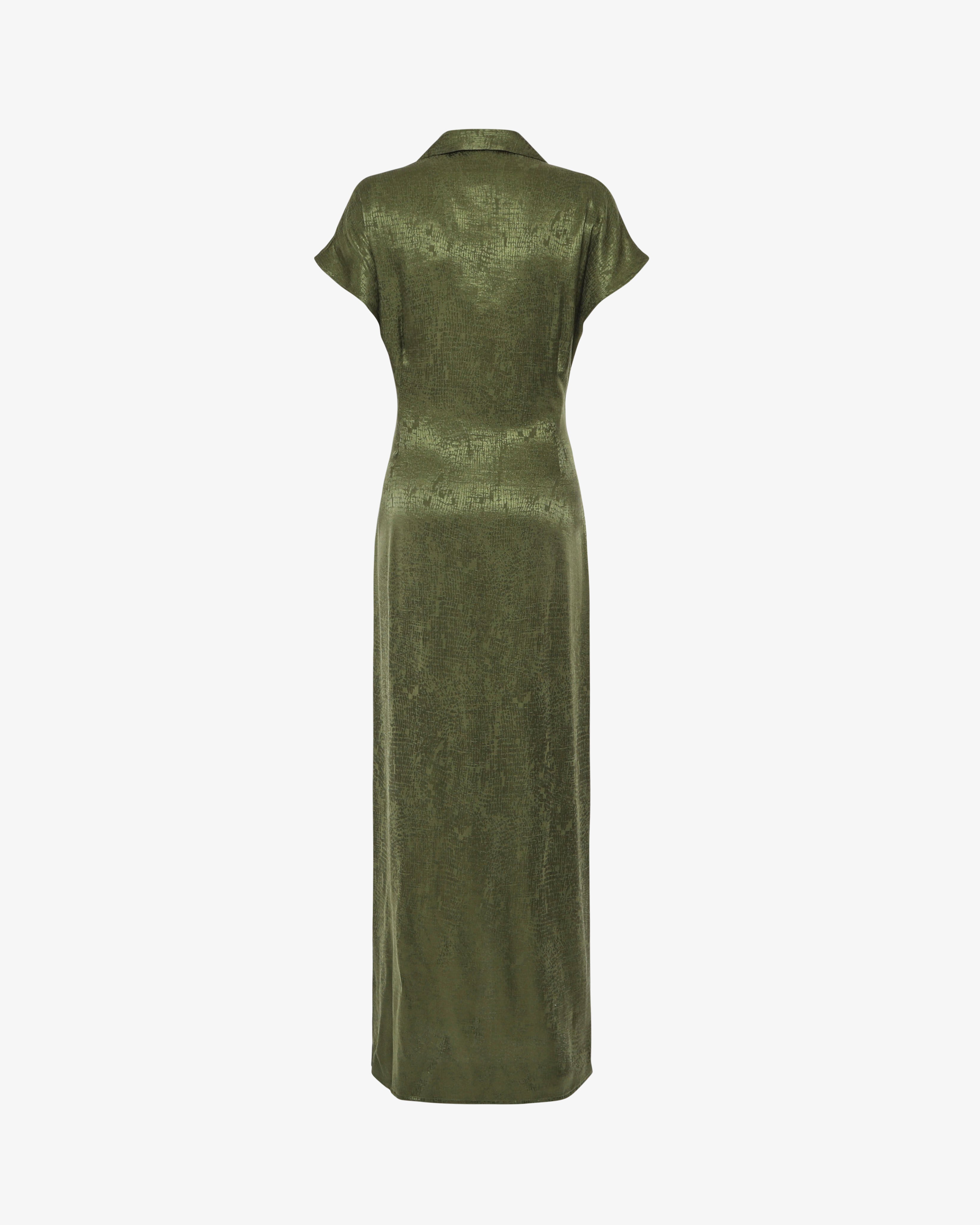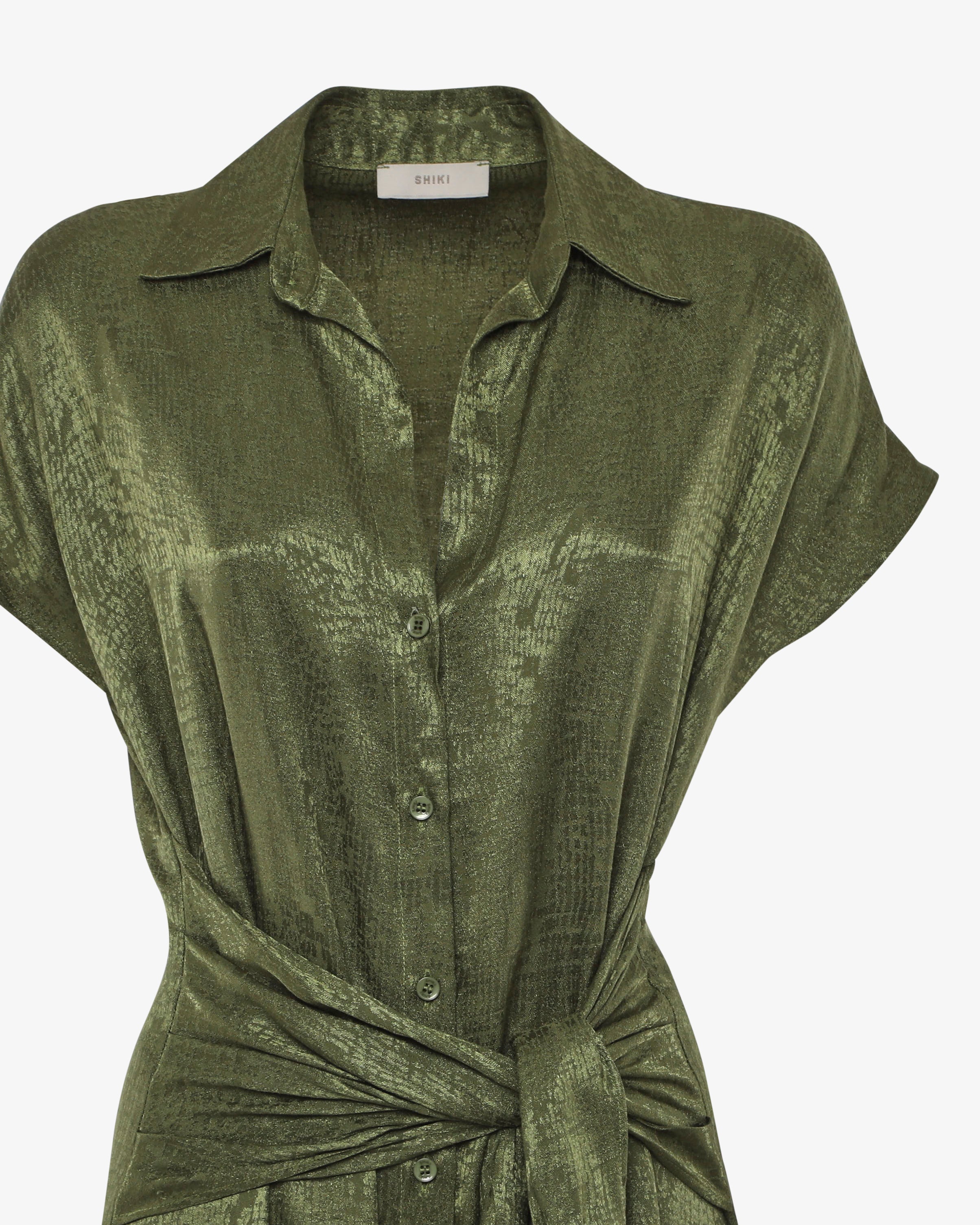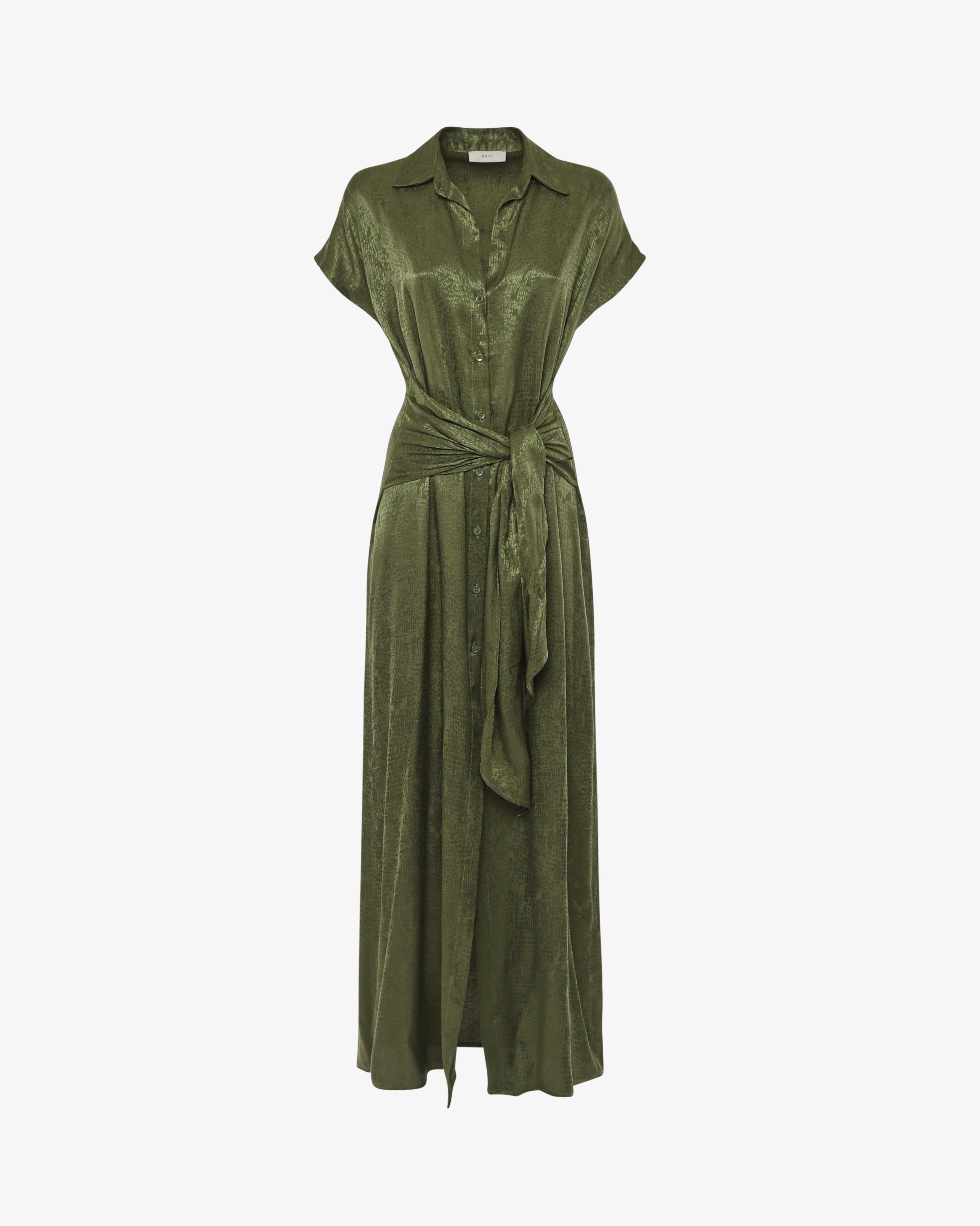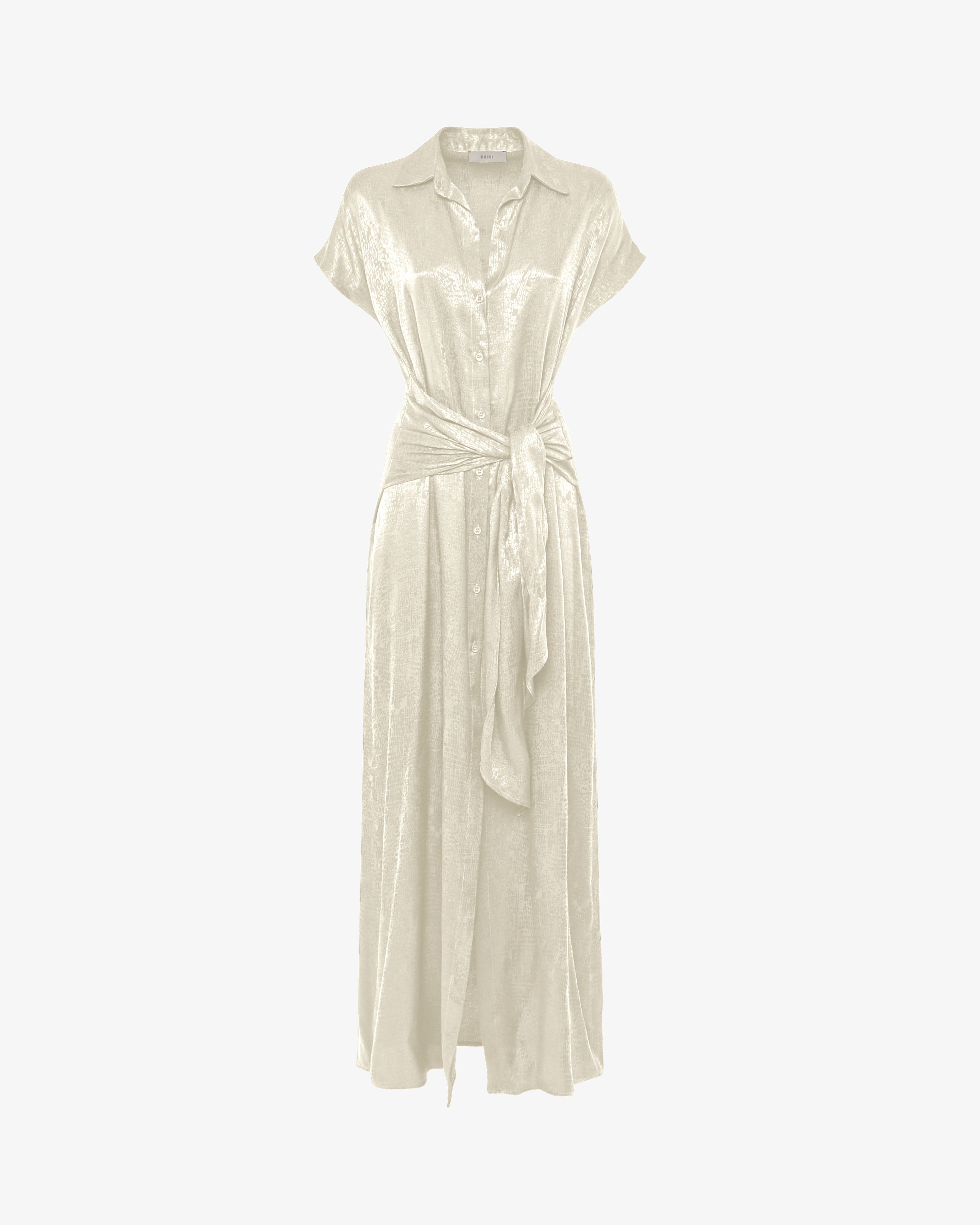 Abito chemisier in tessuto jacquard con cintura coordinata, perfetto per un look elegante e strutturato. Il taglio camicia si unisce alla ricca texture del jacquard per uno stile sofisticato, mentre la cintura in vita valorizza la silhouette. Ideale per l’ufficio, cerimonie o occasioni speciali.
