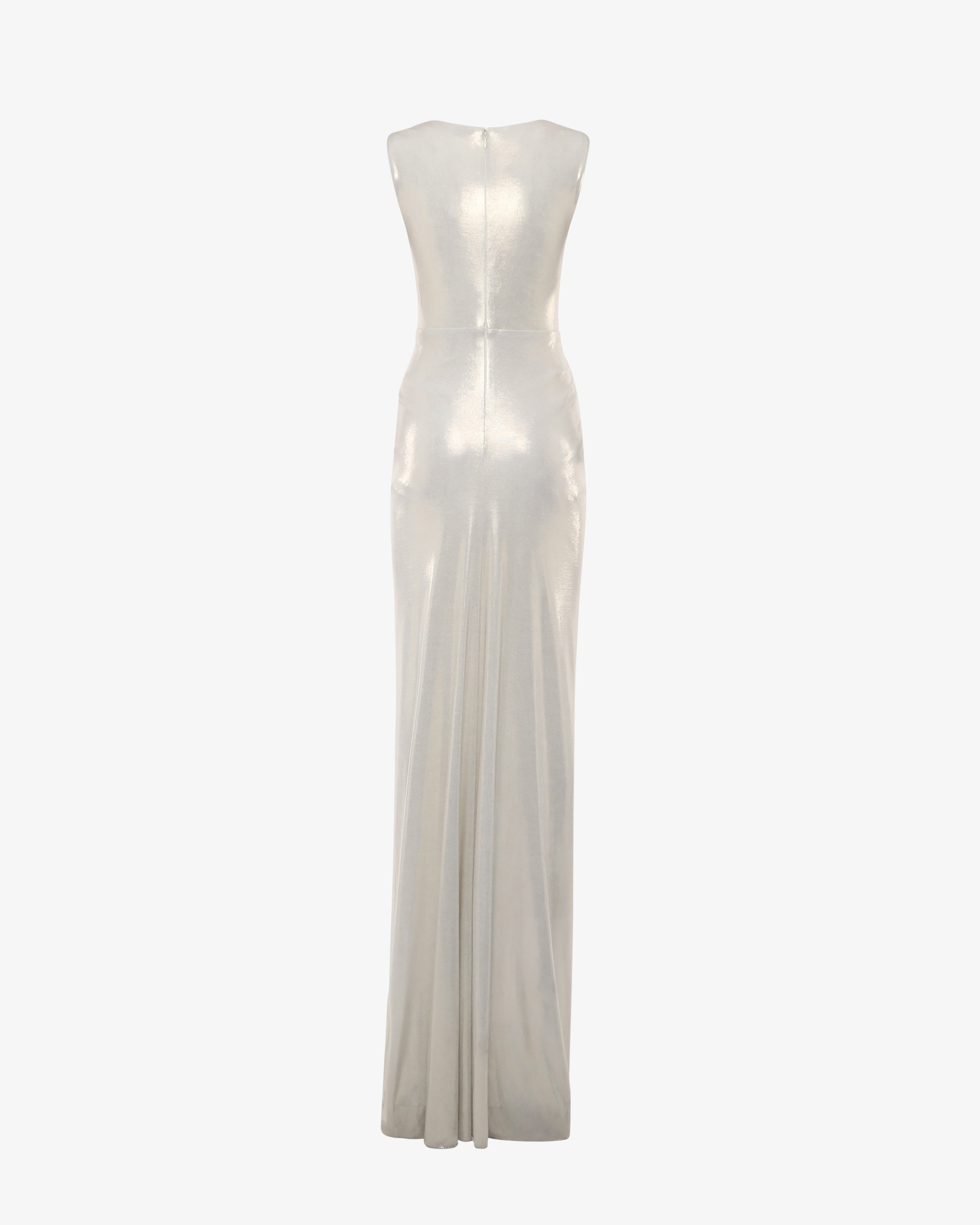 Abito lungo con scollo a V profondo in jersey metallizzato