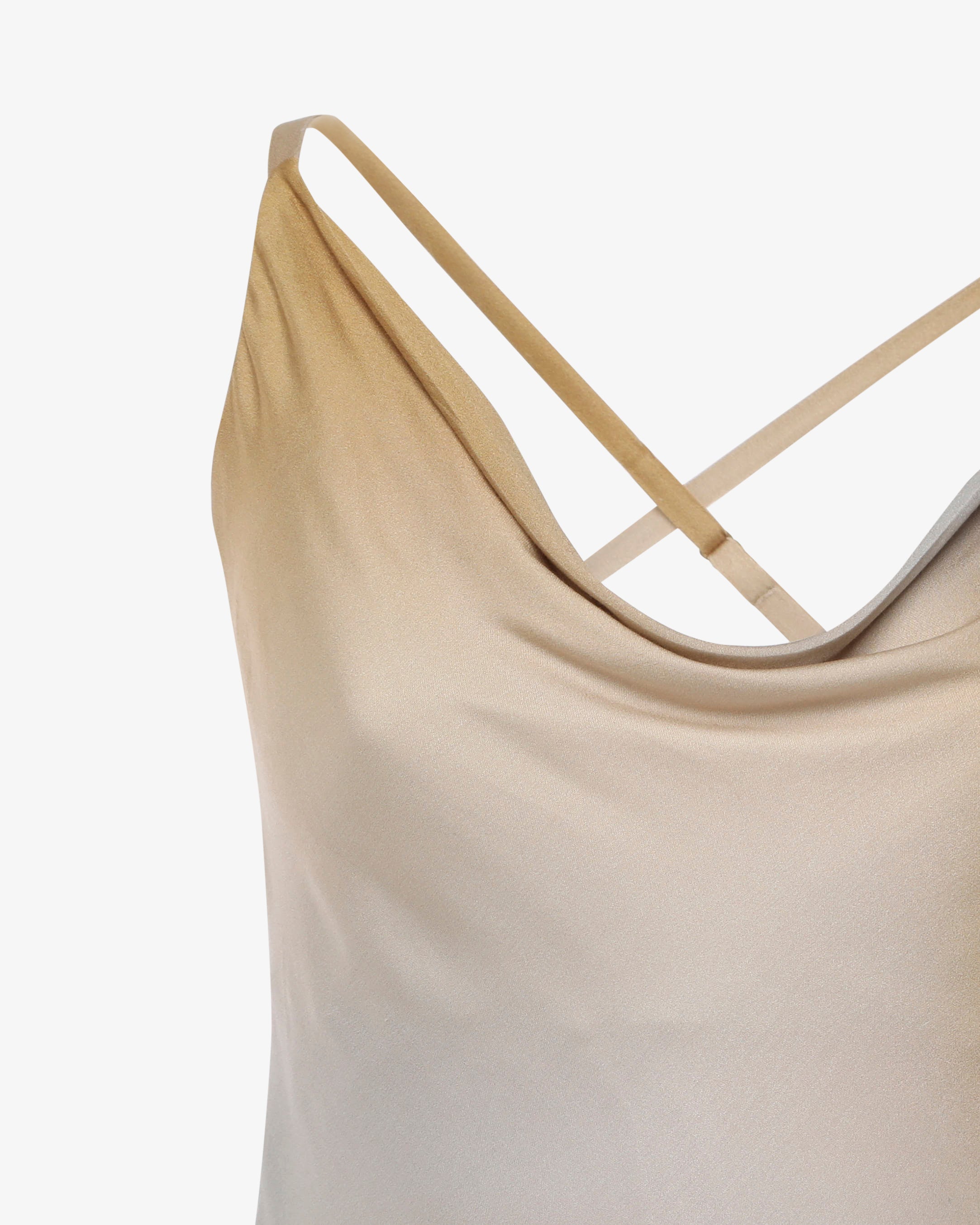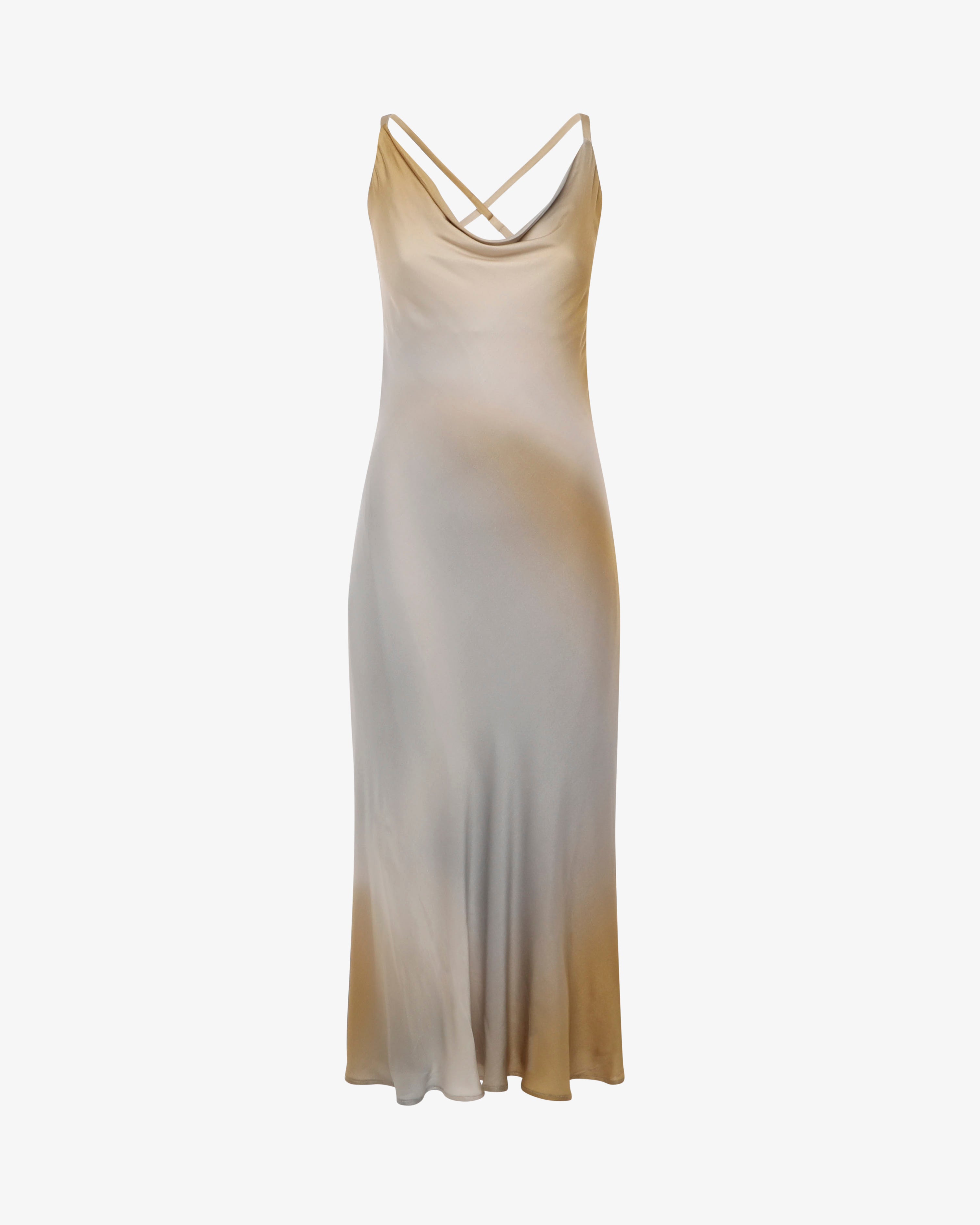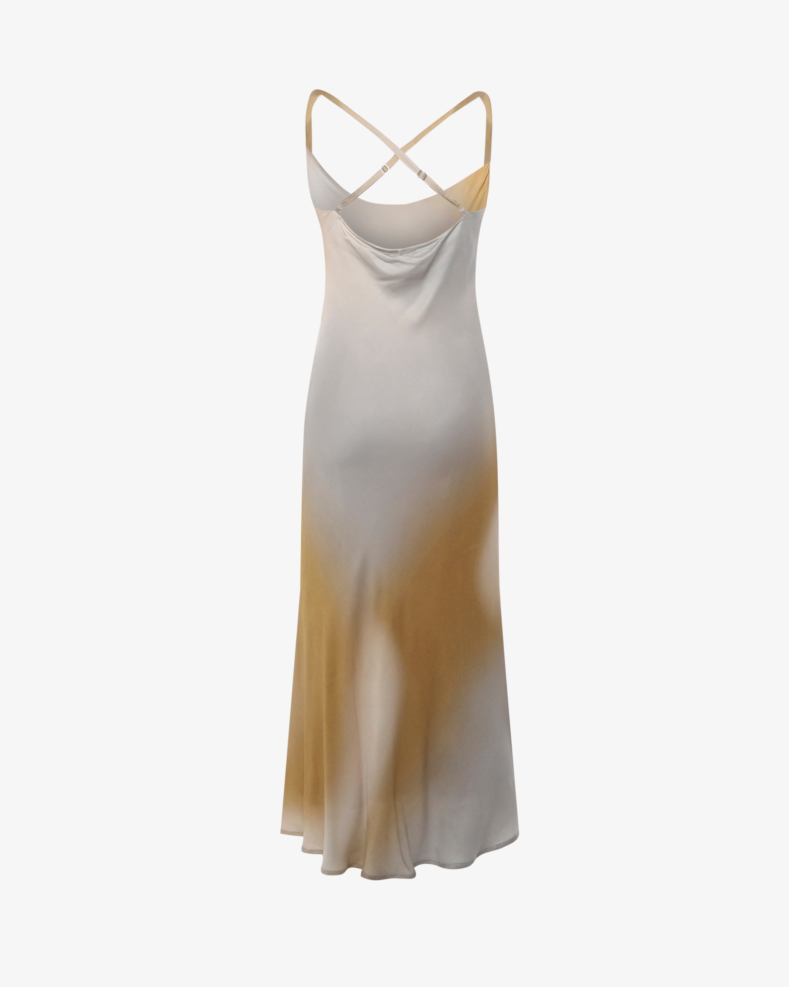 Abito midi con effetto sfumato, perfetto per un look moderno e raffinato. Il design degradé dona movimento e originalità, mentre la lunghezza midi lo rende ideale per diverse occasioni. Realizzato in tessuto leggero, è perfetto per cerimonie, eventi o uscite chic da giorno.