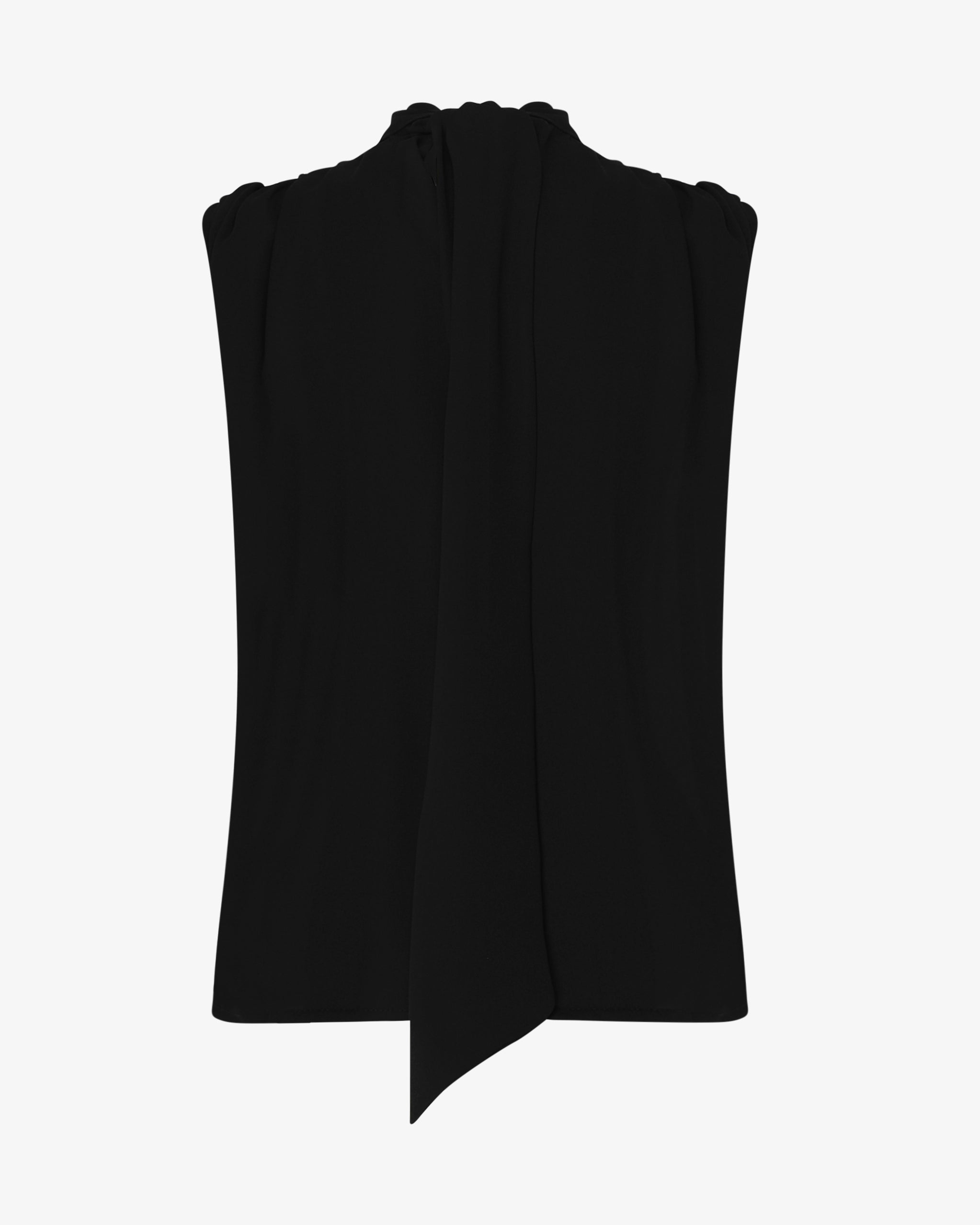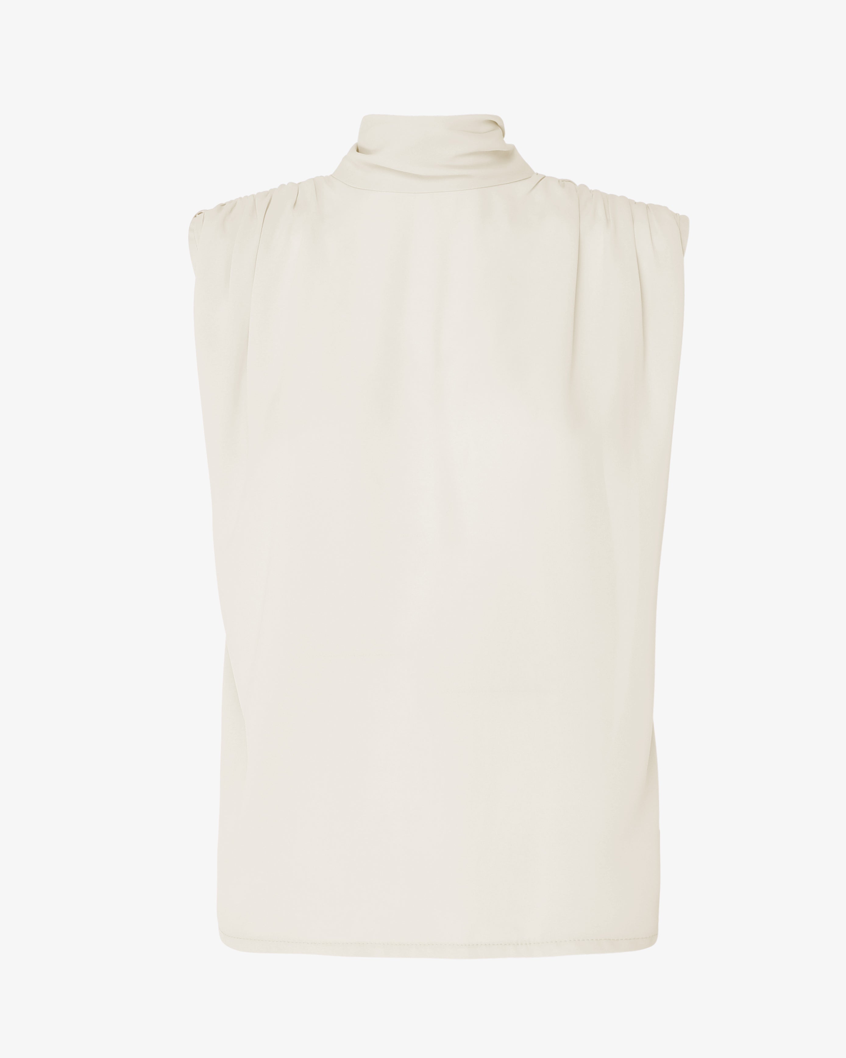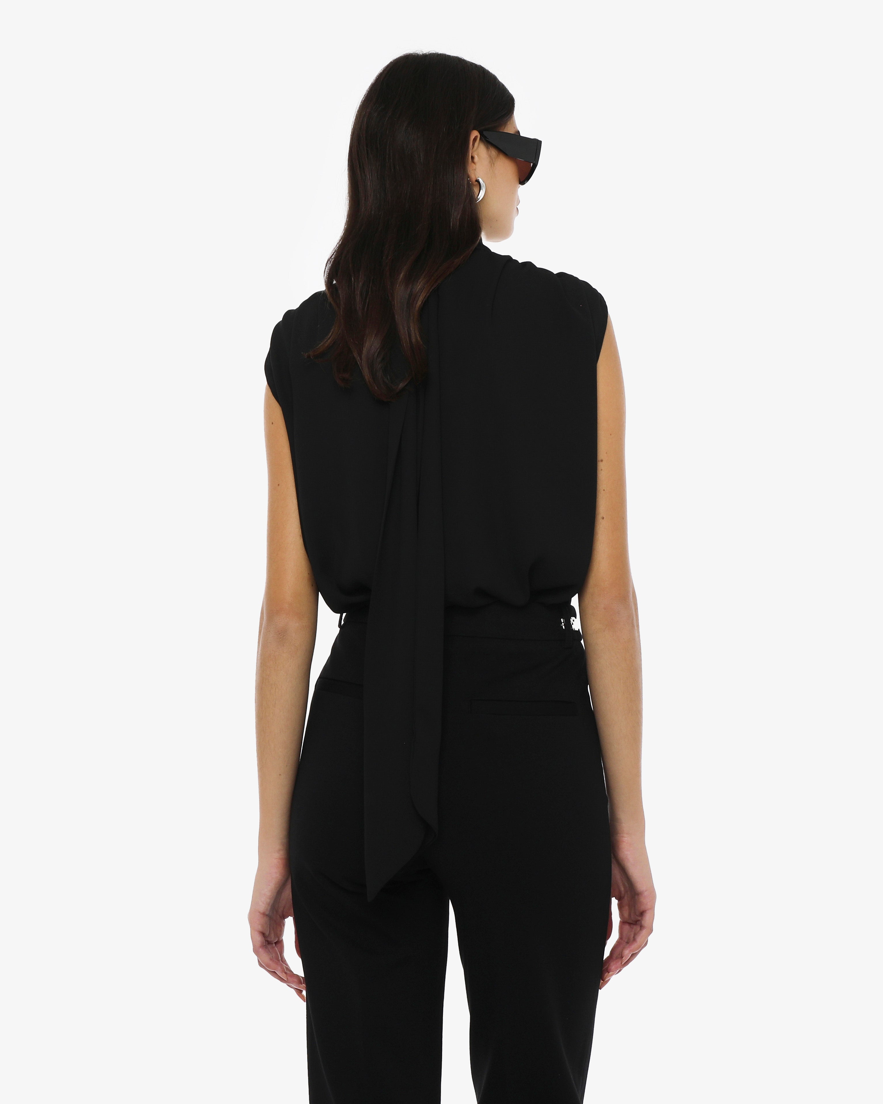 Blusa a collo alto senza maniche in georgette, un capo elegante e versatile perfetto per ogni occasione. Realizzata in tessuto leggero e fluido, offre una vestibilità morbida che accarezza la silhouette con raffinatezza. Il collo alto aggiunge un tocco di classe, creando una linea slanciata e sofisticata. L’assenza di maniche rende la blusa ideale per look stratificati o per essere indossata da sola durante la stagione calda.
