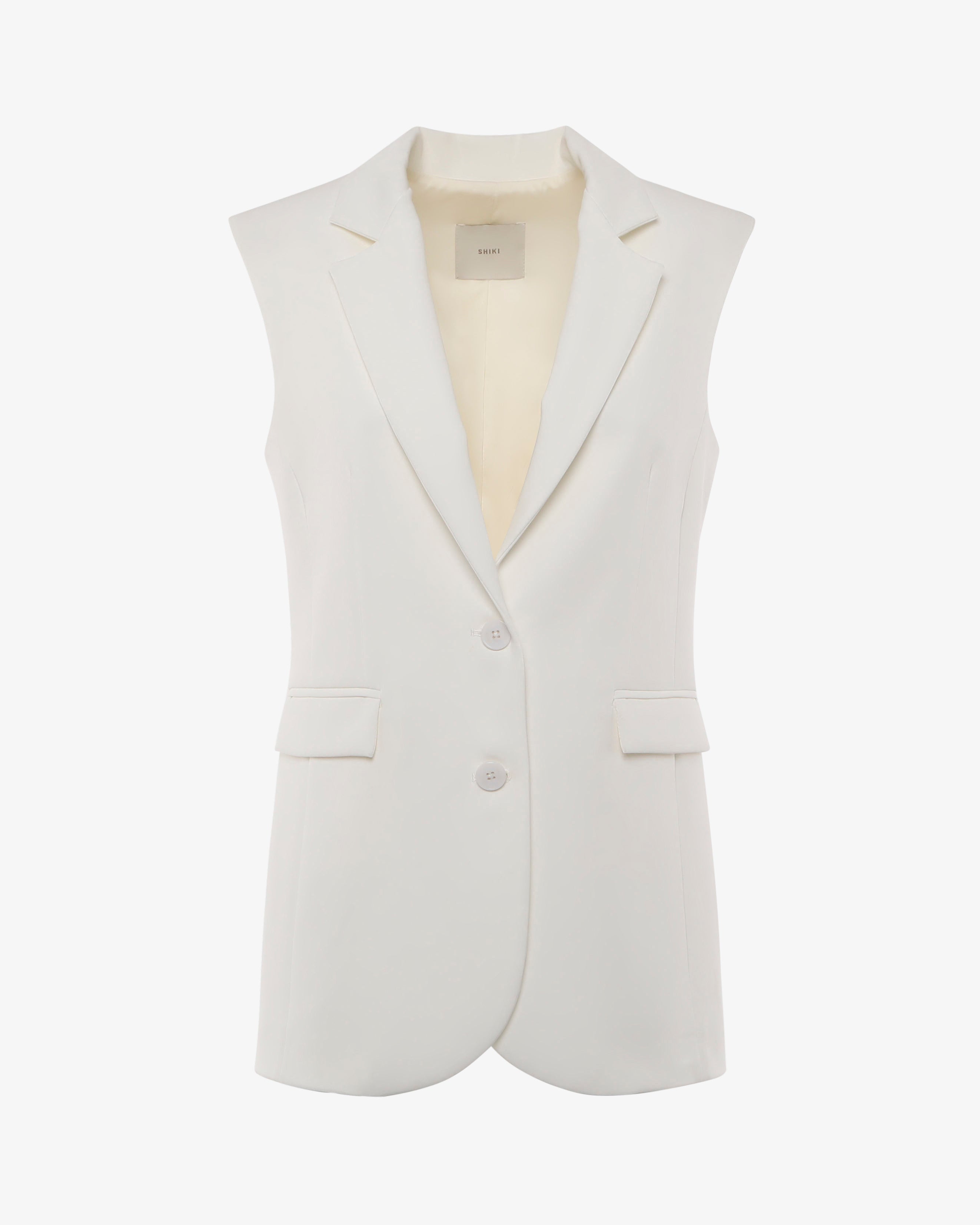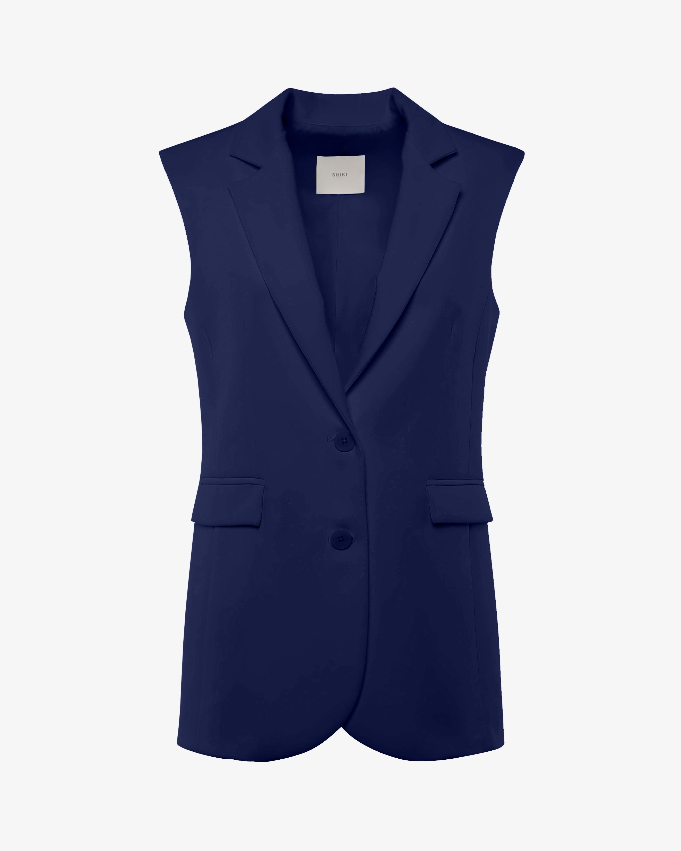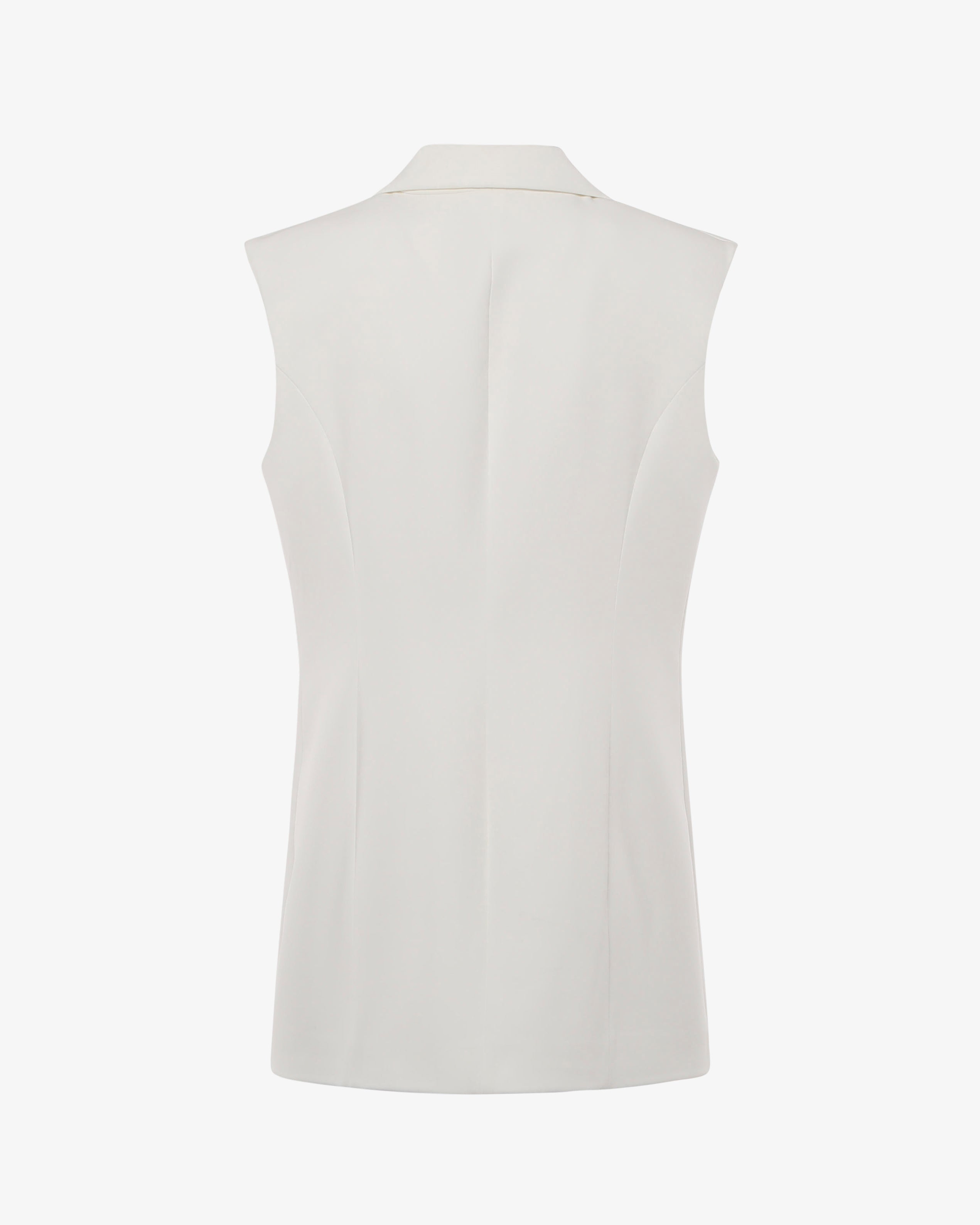 Gilet monopetto con chiusura a bottoni, dal taglio essenziale e versatile. Perfetto da indossare da solo o sopra camicie e top, aggiunge un tocco sartoriale al look. Ideale per outfit casual-chic, da ufficio o per occasioni formali con stile contemporaneo.