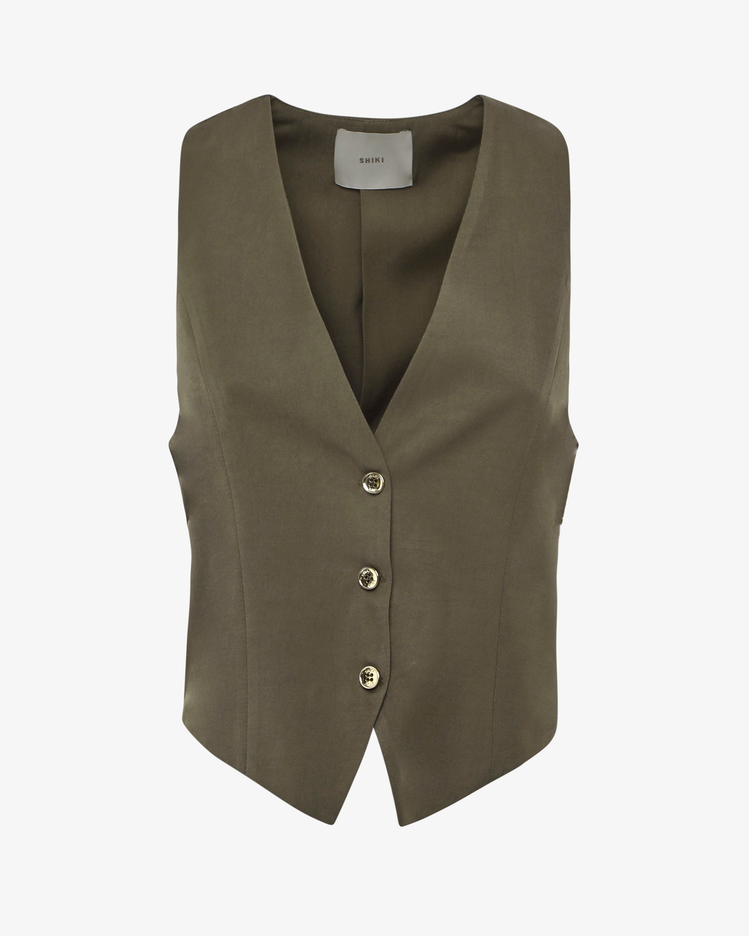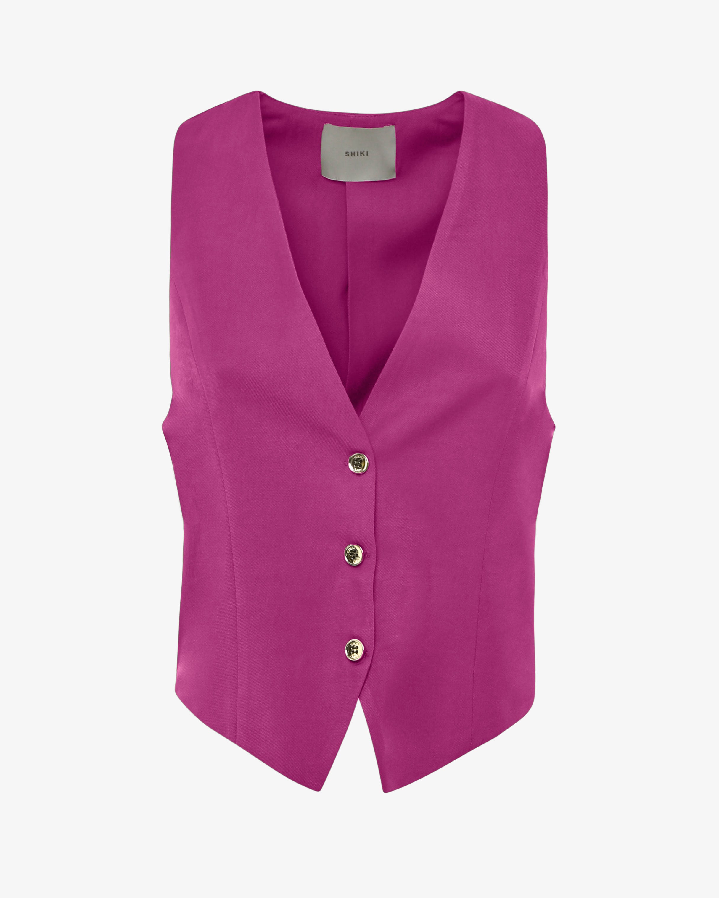 Gilet monopetto in viscosa con bottoni frontali, ideale per un look elegante e leggero. Il tessuto fluido dona comfort e una vestibilità morbida, perfetta per la stagione primavera-estate. Da indossare da solo o in abbinamento a camicie per outfit sofisticati e versatili.