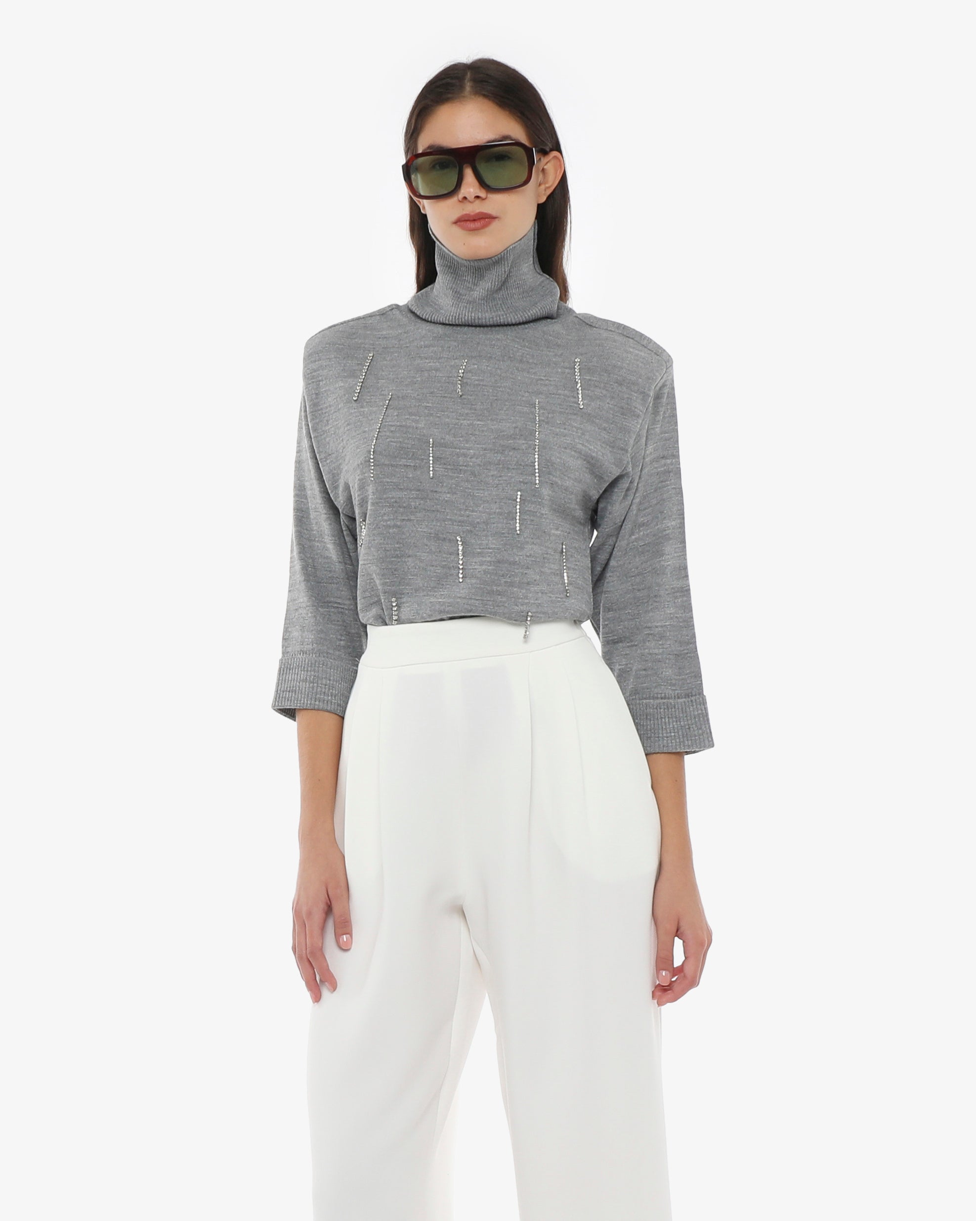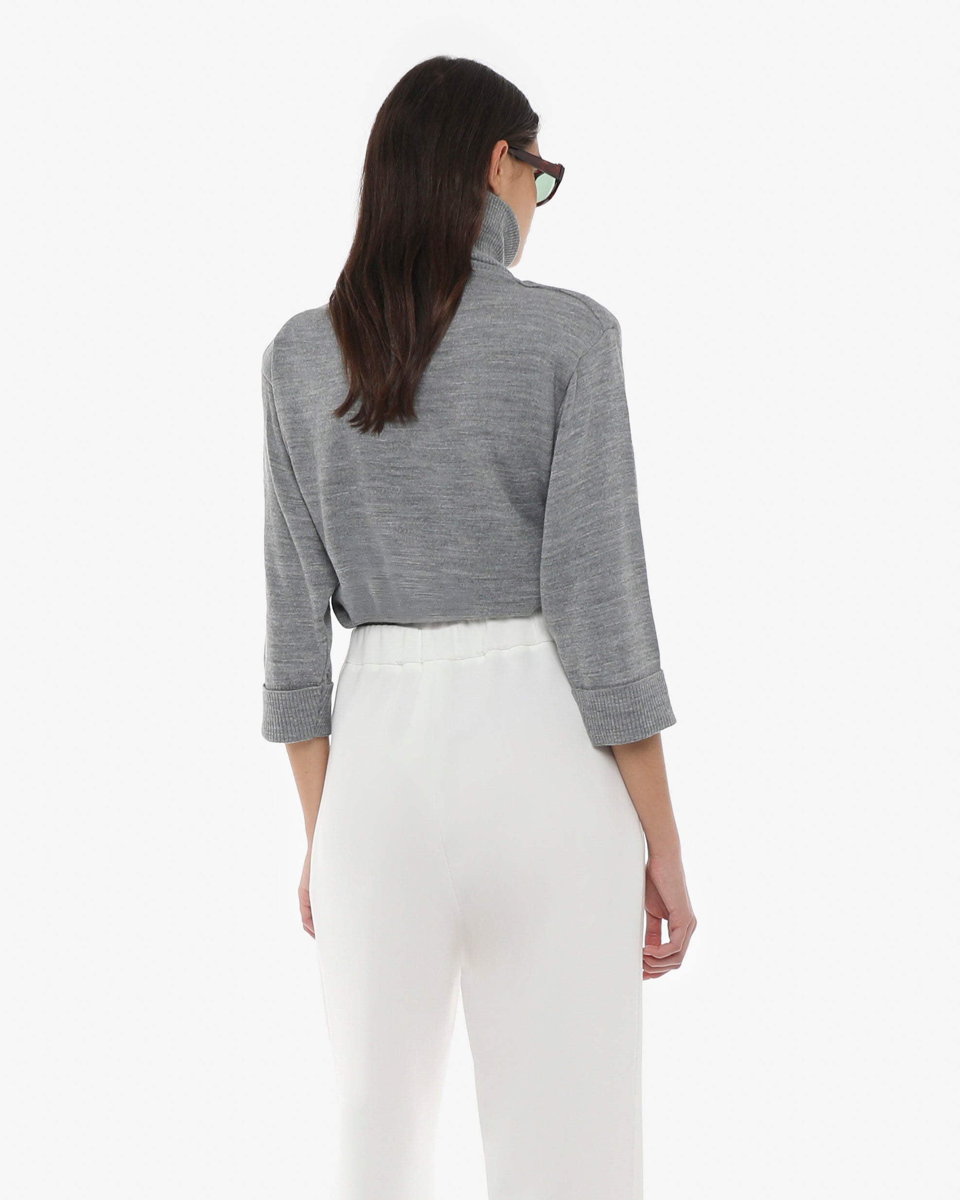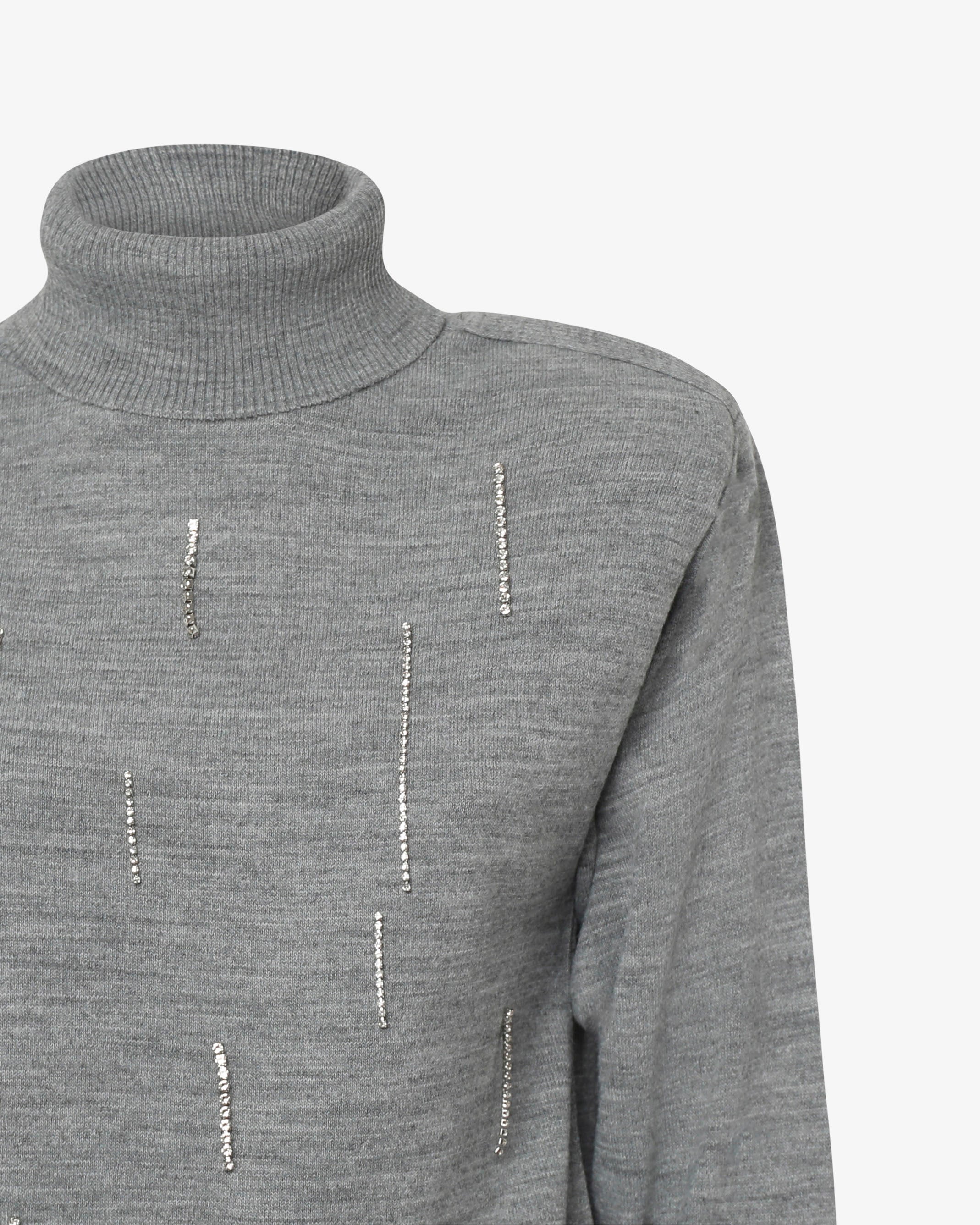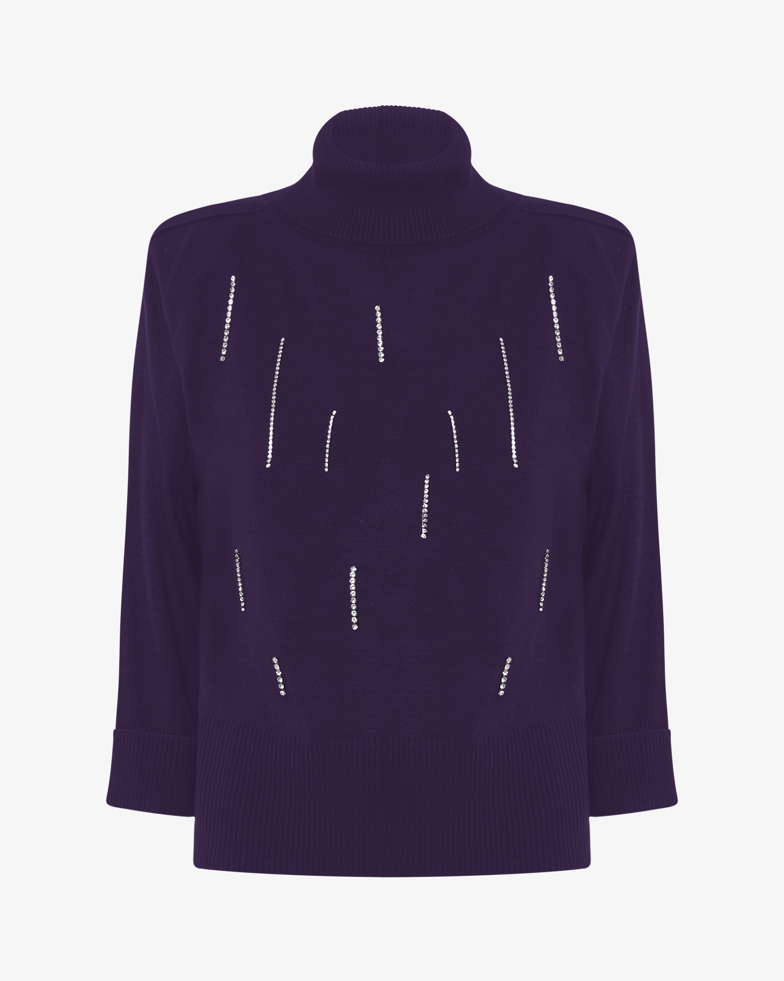 Maglia con collo alto e manica corta con applicazione gioiello, un capo sofisticato che unisce eleganza e praticità. Realizzata in tessuto morbido ed elasticizzato, offre una vestibilità aderente che valorizza la silhouette. Il collo alto aggiunge un tocco classico e raffinato, mentre le maniche corte la rendono ideale per look stratificati o per essere indossata da sola in occasioni più informali.