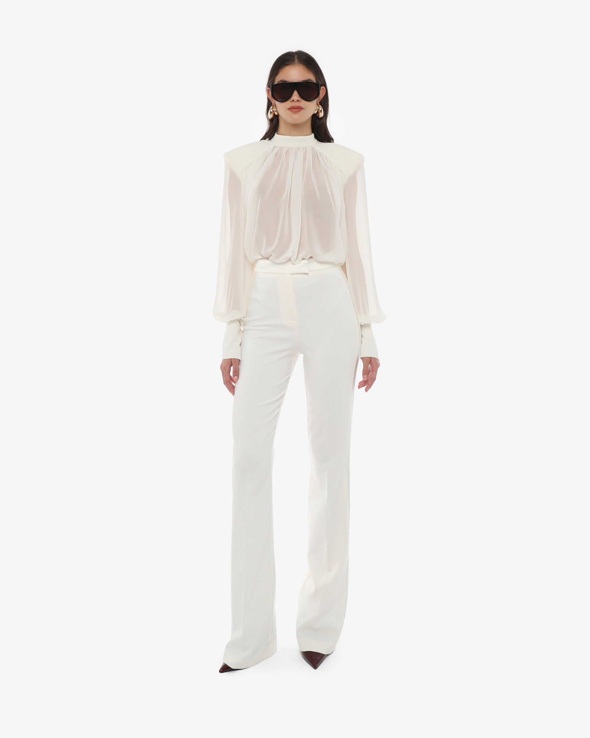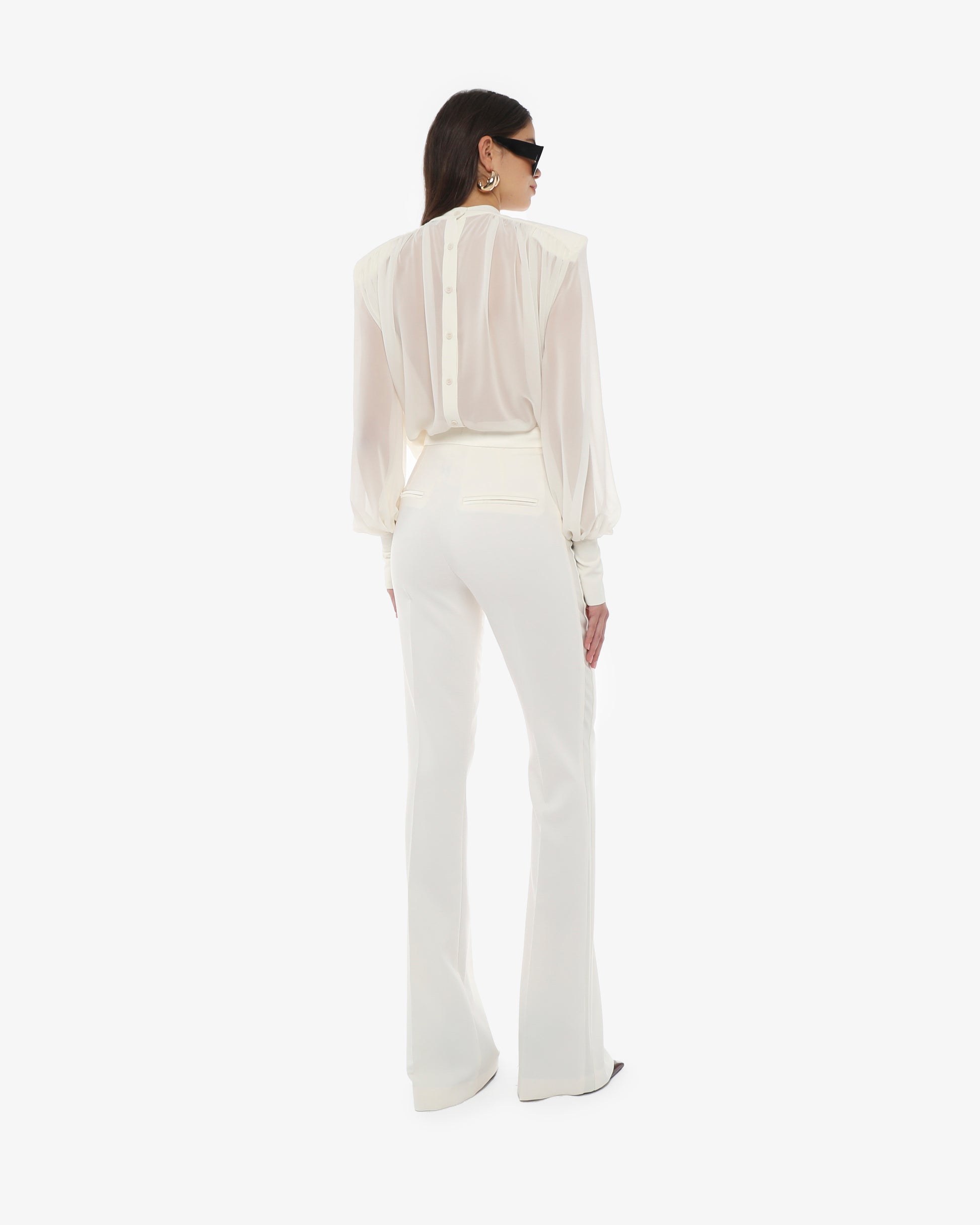 Pantaloni a fondo ampio in tessuto tecnico, un connubio perfetto tra comfort e stile contemporaneo. Realizzati con materiali performanti che garantiscono elasticità, traspirabilità e resistenza, offrono una vestibilità fluida e sofisticata. La vita alta con chiusura a zip e bottone sottolinea la silhouette, mentre il taglio a gamba larga crea un effetto slanciato e chic. Ideali per look versatili, da abbinare a camicie eleganti per l'ufficio o a top casual per un outfit rilassato ma di classe. Perfetti con tacchi per un tocco glamour o con sneakers per uno stile più informale.
